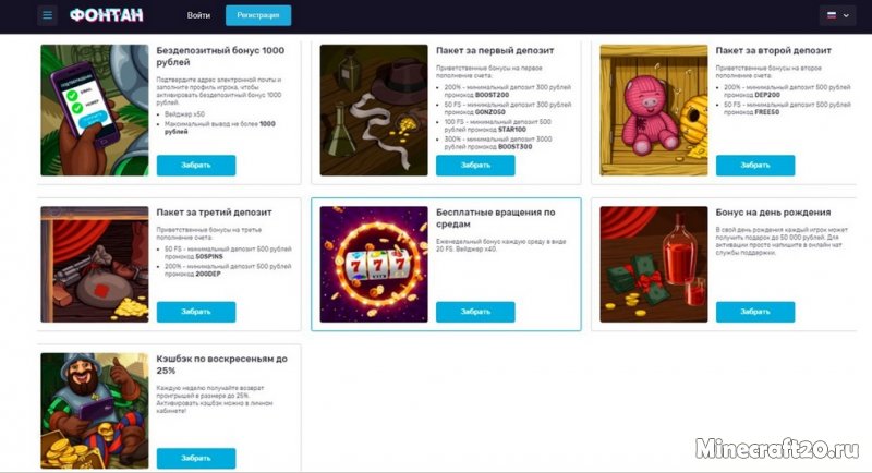 Для пользователей казино Fontan предложены различные вознаграждения: