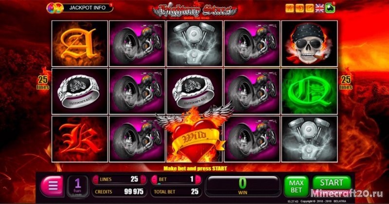 Косуха, банданы и серьезный взгляд – именно такие байкеры стали персонажами игрового аппарата Highway Stars. Провайдер Belatra презентовал игровой автомат в 2016 году.