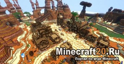 Карта "Дикий запад" [1.10+] — это большая карта для майнкрафт на ней построен город в стиле дикого запада. Весьма атмосферно и красиво. Вы появляетесь на спине орла в небе, я так и не смог с него слезать потому упал, и на второй раз я заспавнился уже в городе. Город достаточно хорошо проработан, цвета, окружение, архитектура все в стиле пустыни и дикого запада, очень красиво.