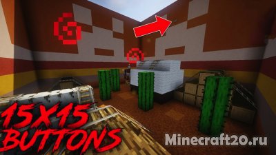15×15 Buttons - карта на Майнкрафт 1.12.2/1.12 представляющая из себя поиск кнопки. Карта является продолжением карты на поиск кнопки под названием "10 × 10 Buttons". Что же нужно делать на карте? Вам нужно найти кнопку которая находится в комнате размером 15 x 15 блоков. На каждом из уровней нужно найти свою кнопку, если вы готовы их найти, то скачайте карту.