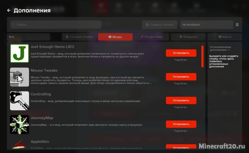 Моды, ресурс-паки, шейдеры и карты – всё быстро и просто можно установить в самом лаунчере. Также есть возможность создать сборку самому.