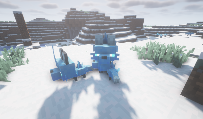 • Ледопепельная лиса: Милые существа, появляющиеся в снежных биомах. Любят спать и охотиться на кур и кроликов, но могут атаковать незнакомцев шипами. Приручаемы: детёныши следуют за хозяином, взрослые защищают и периодически сбрасывают шипы. Есть несколько вариантов окраса.