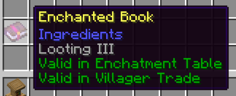 В версии 2.4.2 вы также можете контролировать, разрешать ли зачарования в таблицах зачарований и сделках (обратите внимание, что вы можете ограничить их, только если они разрешены изначально. Если они не разрешены в начале, вы ничего не можете с этим поделать). Он поддерживает белый/черный список в идентификаторе мода или идентификаторе зачарования, что упрощает управление.