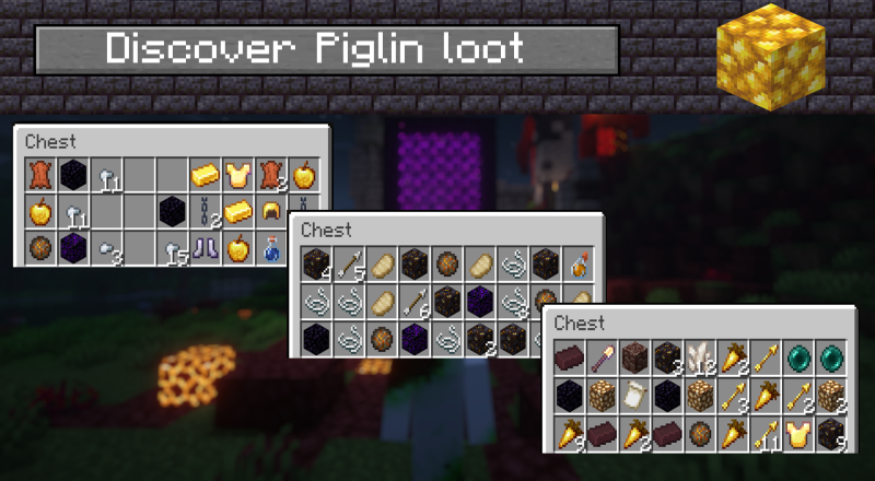 - Исследуйте останки: находите и изучайте, что замышляли пиглины в прошлом.