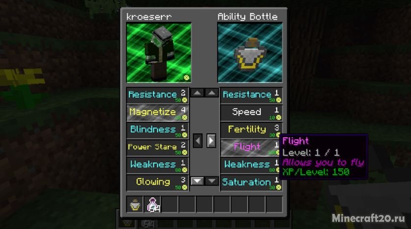 У вас будет маленькая бутылочка, которую можно будет открыть в любое время, в ней содержатся эффекты. Эффекты можно будет использовать в любое время. Все способности можно улучшать вашем меню с помощью опыта.