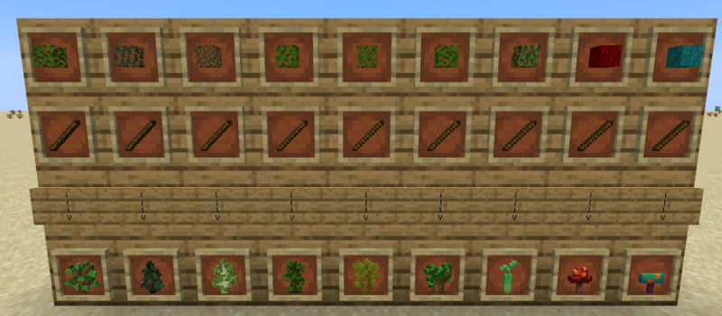 С этим модом вы наконец сможете скрафтить все саженцы и грибы. Рецепт очень прост: вам нужна палка и листья того типа саженца, который вы хотите получить.