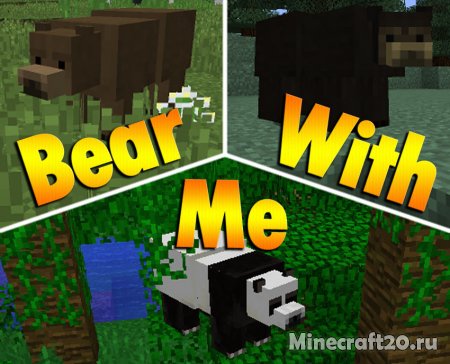 Bear With Me - простой мод на Майнкрафт 1.12.2/1.11.2, который добавляет новые виды медведей в мир Minecraft. Появятся такие подвиды медведей как: Гризли, Черный медведь и даже Панда. Каждый вид имеет отличающееся здоровье и жить в различных биомах, а в остальном они будут являться обычными.