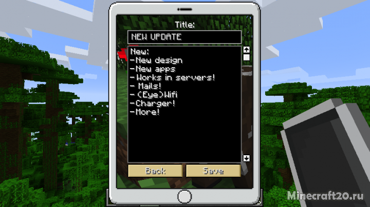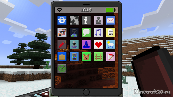 На смартфон можно установить приложение для поиска ресурсов в шахтах, калькулятор, спавн монстров, редактирование местности, минирование местности TNT пушками и другие интересные возможности. Мод можно назвать немного читерским, хорошо подойдёт, для того чтобы потроллить ваших друзей.