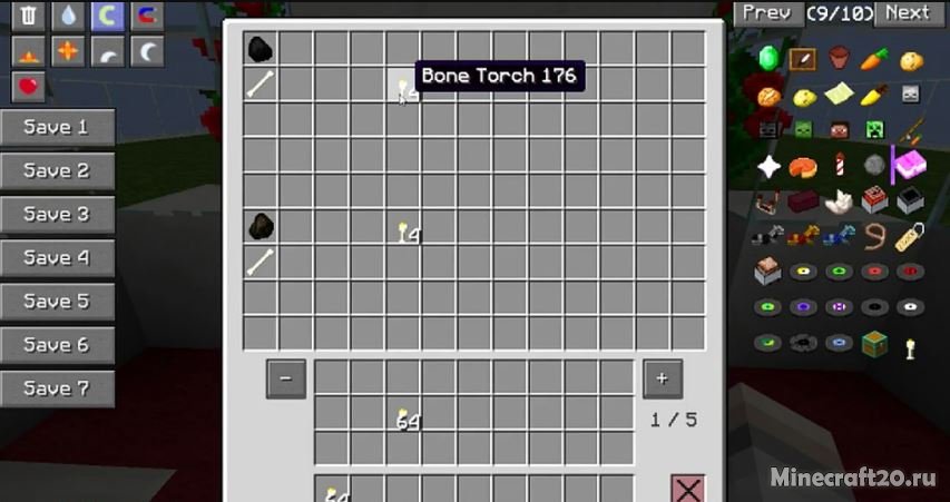 Это мод даст возможность скрафтить факелы из костей. Это очень удобно, ведь часто в инвентаре остаются кости от различных мобов. Теперь вам достаточно кости и угля, чтобы сделать костный факел.