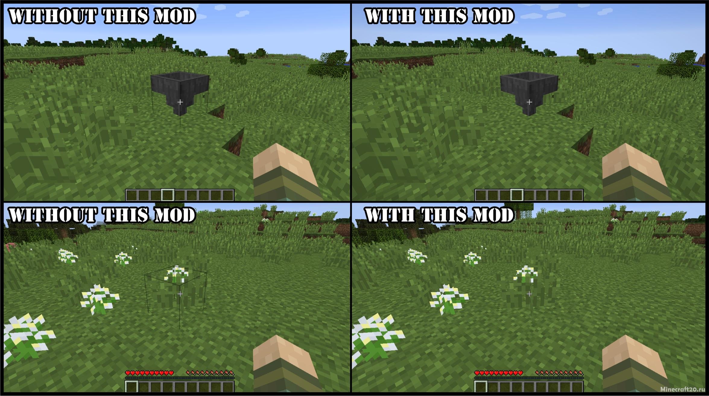 Теперь из-за удаления этой достаточно простой вещи не будет никаких отвлекающих факторов, поэтому игра будет идти плавно и естественно. Установка мода отнимет немного времени, как и привыкание к этому. Игроки утверждают, что те кто поставил на Minecraft это дополнение, не захотят прекращать его использование, ведь без выделений игра станет лучше выглядеть! ![Мод Remove Mouseover Highlight [1.12.2] (Отключаем выделение)](/uploads/posts/2018-07/1531495750_4.jpg)