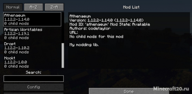 Athenaeum - мод библиотека для Майнкрафт 1.12.2, которые является обязательным дополнением для правильной установки мода Artisan Worktables и остальных модификаций игры Minecraft. Библиотека запрограммирована для поддержки загрузки и предоставления ресурсов для других модов, поэтому он часто появляется в разделе «требуется» при установке. Базовые моды в настоящее время представляют собой тенденцию с максимальной экономией ресурсов и могут поддерживать несколько модов одновременно. Благодаря существованию этих типов модов ядра, обновление, изменение и исправление ошибок для многих модов становится проще. Большинство разработчиков модов, которые запрограммировали много модов, используют этот метод программирования.