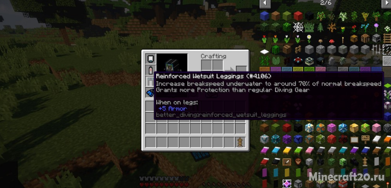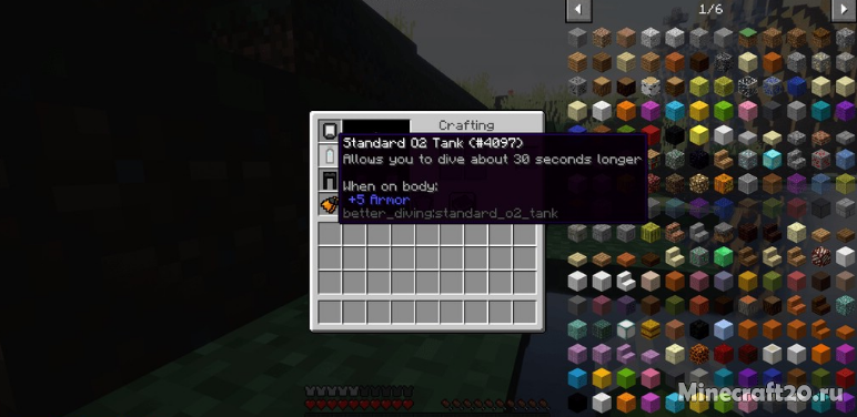 Better Diving – мод на Майнкрафт 1.16.5/1.12.2, который позволяет всем игрокам попробовать себя в роли самого настоящего дайвера, ведь теперь для этого есть все, что нужно. Новые предметы, костюмы, новая игровая механика плавания. Была улучшена система плавания, чтобы прочувствовать все игровые изменения, вам нужно просто создать все новые игровые костюмы, которые в свою очередь и позволят насладиться новым подводным плаванием.