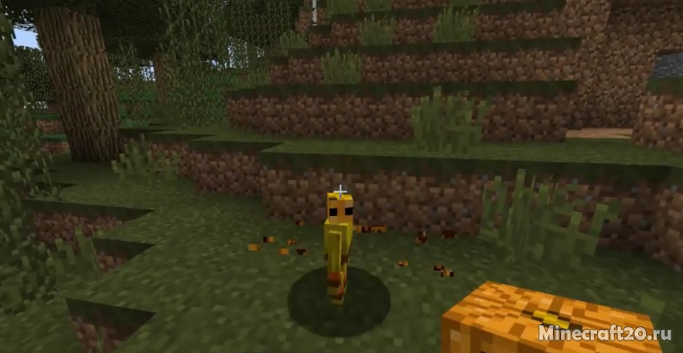 Чтобы создать данного голема вам понадобится всего лишь два блока. Первый – это стог сена, который нужно расположить на земле, а второй – тыкву. После того, как вы поставите эти два блока (тыкву на стог сена) произойдет небольшой взрыв, который и создаст голема.