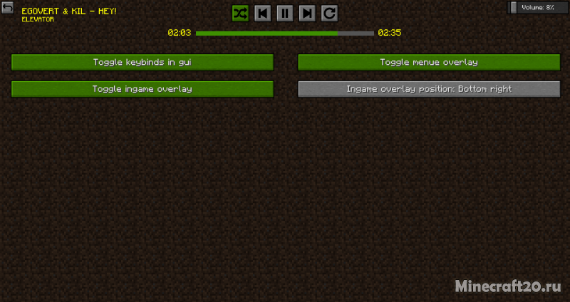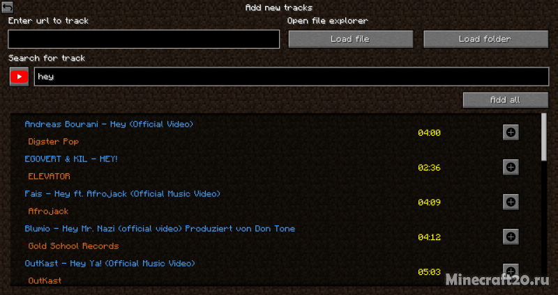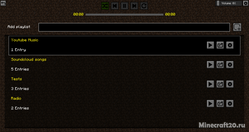 Music Player – мод на Майнкрафт 1.20.1/1.19.4, который добавляет в игру новую и довольно полезную возможность, а именно – музыкальный и видеоплеер. Дело в том, что данный мод добавляет массу источников, где можно проигрывать видео и аудио файлы. Для активации мода необходимо нажать клавишу F8, после чего откроется меню с всевозможными источниками, где можно выбрать один определенный, найти необходимый аудио или видео файл, после чего его можно будет запустить, и он будет проигрываться. С помощью настроек Майнкрафт вы сможете оптимизировать игровые звуки и музыку из мода, что крайне удобно.