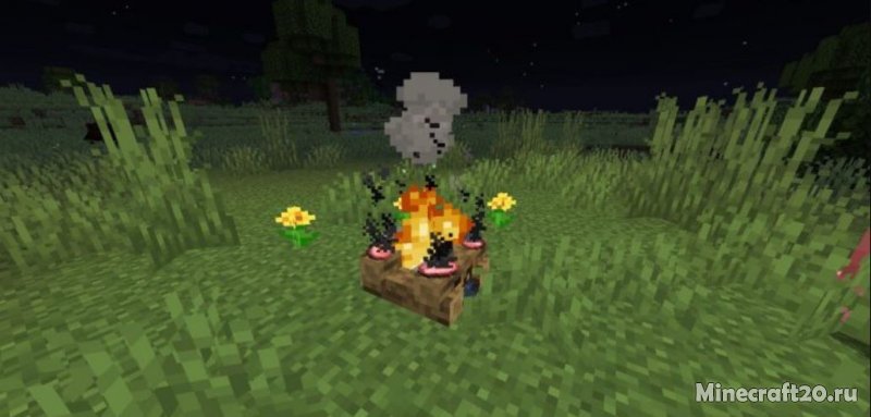 No Hostiles Around Campfire мод на Майнкрафт 1.19.4/1.18.2. Костер - довольно новый блок в Minecraft. Он был включен в игру только в версии 1.14. У костра довольно крутая функция. Его главная особенность в том, что он используется для приготовления сырой пищи в игре. Его также можно использовать для подачи сигнала (благодаря дыму) или в качестве ловушки (потому что он может дать урон существам, которые на нем ходят) и для освещения.