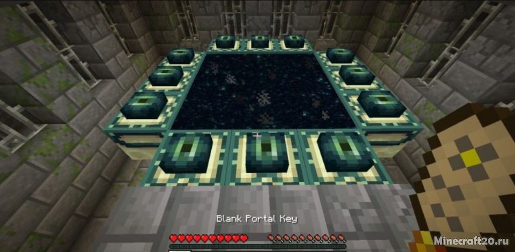 Когда у вас есть все три, вам нужно будет построить ворота (как показано на рисунке). Затем вам нужно активировать пустой ключ портала, щелкнув его правой кнопкой мыши на фрейме конечного портала. Когда активирован пустой ключ портала, он будет иметь произвольное имя.