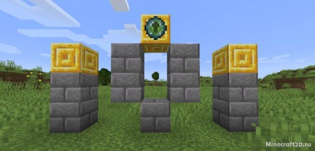 Вы можете создавать вид ворот различными способами, но убедитесь, что необходимые блоки на месте (каменные кирпичи, позолоченный портальный блок, краеугольный камень портала). Более того, каждый перенесет вас в другое подземелье. Это означает, что мод будет иметь множество подземелий для вас, чтобы исследовать.