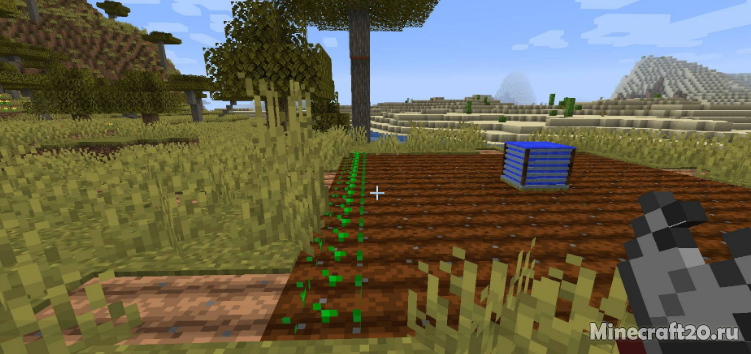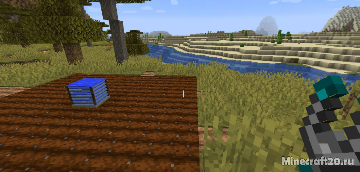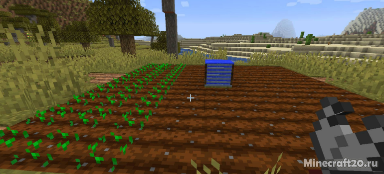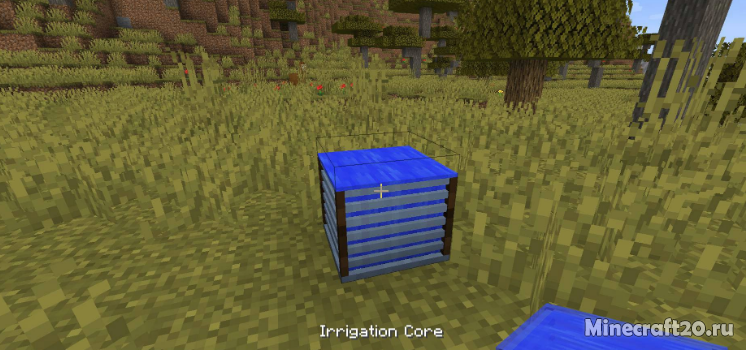 Орошительный блок. Позволяет вам не использовать воду, вместо этого вы сможете установить блок с водой, после чего можно будет создавать ферму вокруг этого блока в довольно большом радиусе.
