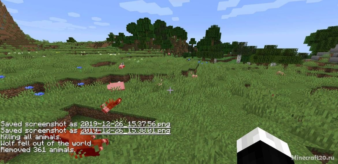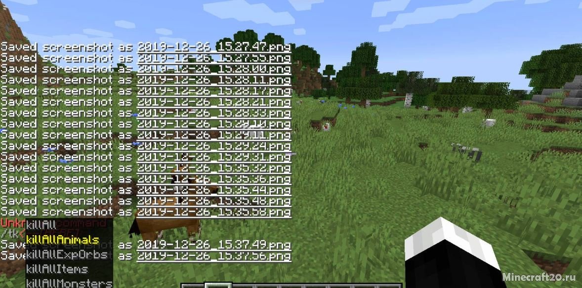 /tk killAllAnimals – команда убивает всех мобов вокруг игрока в определенном радиусе, который можно указать в команде.