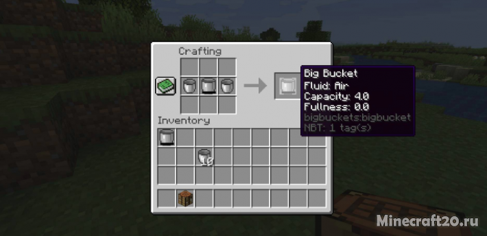 Крафт и создание больших ведер, всего есть 4 разновидности ведер.