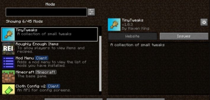 TinyTweaks - мод на Майнкрафт 1.16.5/1.15.2. Это небольшой мод. Это будет включать некоторые незначительные изменения в Minecraft. Целью этих изменений является улучшение игрового опыта для игроков!