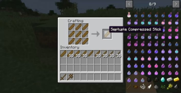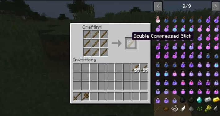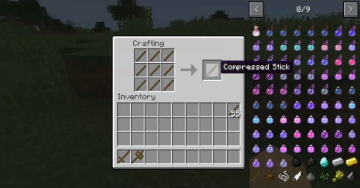 Super Stick Sword – мод на Майнкрафт 1.18.1/1.15.2, который добавляет в игровой процесс несколько новых предметов. Их довольно просто создать, однако, понадобится очень большое количество такого ресурса, как дерево. Первый предмет – это топор из сжатого дерева. Второй – меч. С помощью сжатия палок можно будет создавать такие инструменты, и они будут крайне эффективны для выживания.