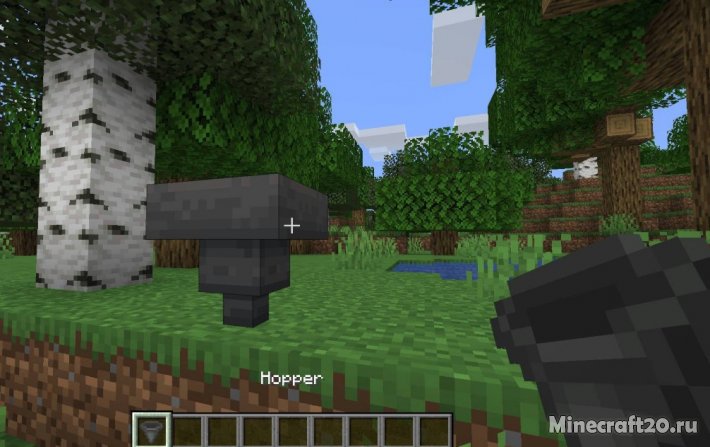 2. Теперь необходимо разместить ее в необходимом месте и выбрать блок, который будет фильтроваться. Для этого, необходимо разместить его в специальном поле, после чего золотая воронка начнет фильтровать предметы, которые попадают в нее.