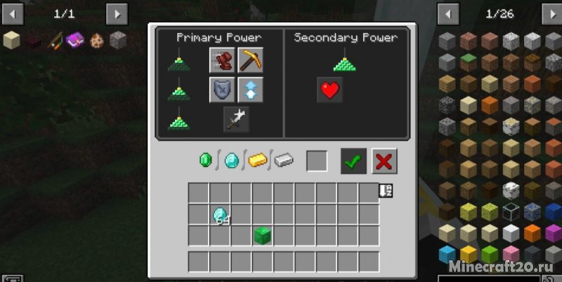 1. Можно изменить тип существ, для которых будут применяться все эффекты от маяка. Можно применять эффекты к нейтральным, прирученным или враждебным мобами. Также можно применить усиления сразу для всех мобов в радиусе действия маяка.