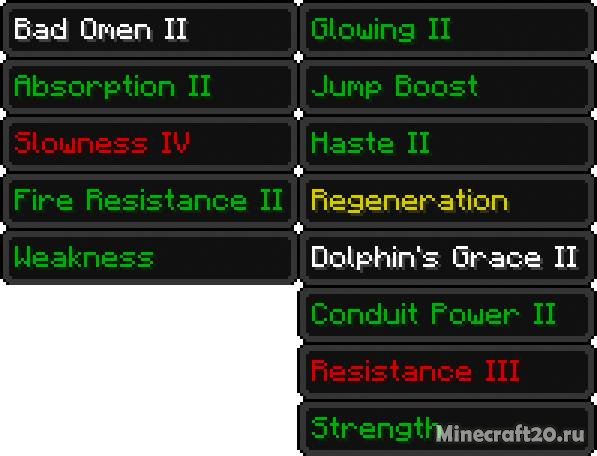 Отображение только имени: цвет имени эффекта показывает, сколько времени до его окончания