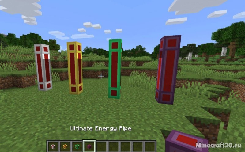 Вы можете подключить инвентарь предметов к трубам предметов. Вы можете подключить резервуары для жидкости (или любой другой инвентарь для жидкости) к трубам для жидкости. Вы можете подключить Forge Energy (или RF) источники и направления к энергетическим трубам.