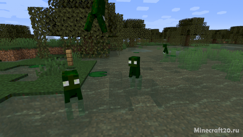 Froglins - мод на Майнкрафт 1.17.1/1.16.5, который добавляет в игру нового моба, который обитает в болотах. В течение дня они маскировались на два блока под водой, чтобы спрятаться от врагов. С наступлением ночи они будут подниматься снизу за вашими живыми животными. Эти лягушки быстрые, незаметные и, кроме того, смертельно опасные.