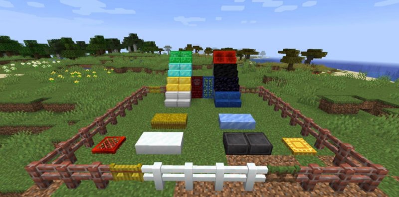 Материалы могут варьироваться от простых вещей, таких как Грязь, Глина или Трава, до интересных, таких как Кирпичи, Кость и Кирпич Пустоты, до самых абсурдных, таких как Золото, Алмаз и даже Незерит.
