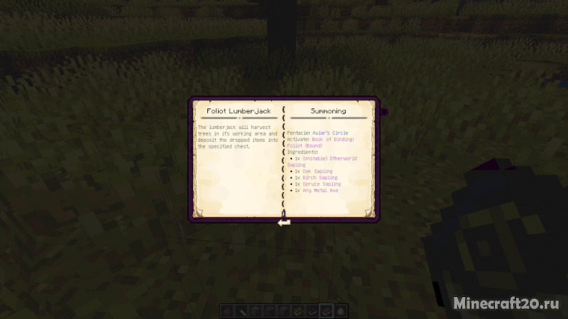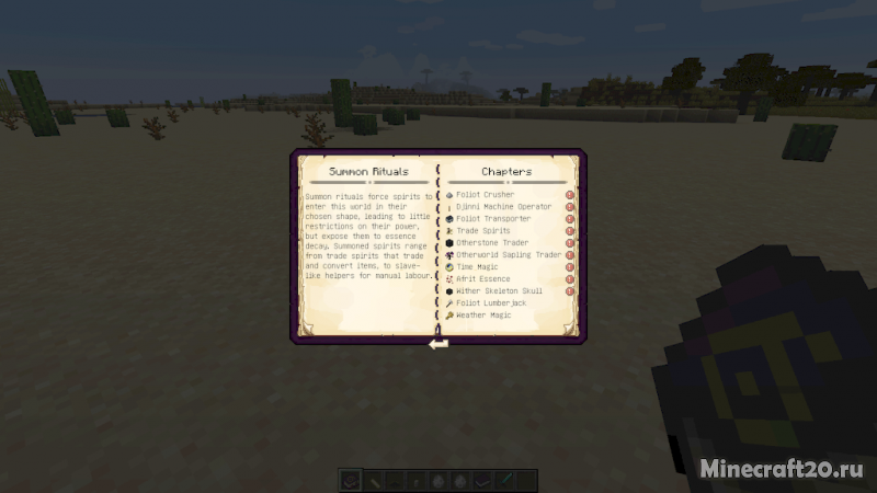При помощи мода вы сможете обучиться тайному знанию и использовать его для автоматизации различных задач, хранения огромного количества предметов, а так же призывать различных демонов-духов, которых можно использовать в качестве помощников. С помощью нескольких простых шагов по активизации ритуала и немного ваших ресурсов, среднестатистические игроки могут вызвать крошечного миньона, который служит своему хозяину в выполнении любой поставленной задачи. Эти миньоны могут рубить деревья, собирать руду и управлять механизмами. Кроме того, есть еще больше темных ритуалов, которые нужно исследовать, поскольку оккультизм углубляется в искусство владения и автоматизации.