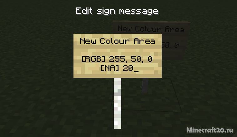 Например, если вам нужна территория под названием «Луг» с радиусом вокруг знака в 30 блоков: