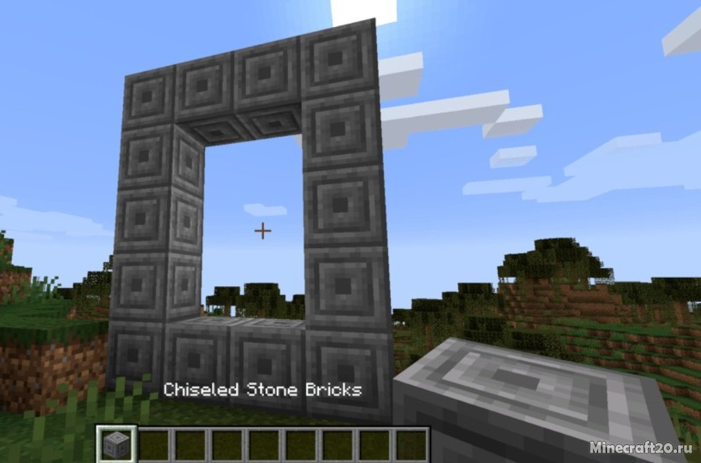 Чтобы войти в Горизонт Шахтера, создайте обычный портал из точеных каменных кирпичей и щелкните его правой кнопкой мыши с киркой внизу. Войдите в портал и нажмите красться.