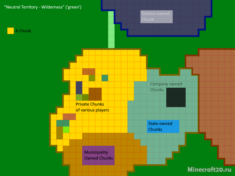 По умолчанию «дикая местность» (невостребованная земля) защищена, поэтому игроки не могут редактировать там блоки, вы, конечно, можете отключить это в конфигурации. В случае, если дикая местность находится под защитой, игроки могут предъявить «временные» претензии, которые называются «транзитными зонами» - они автоматически аннулируются через день и стоят 10% от стоимости участка. Они, например, полезны, например, для строительства дорог из одного муниципалитета в другой, находящихся на большом расстоянии друг от друга. Конечно, «транзитная зона» не дает доступа ко всему чанку, только к определенному уровню, установленному в config.