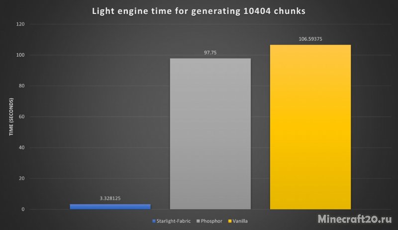 На приведенном ниже графике показано, сколько времени световой движок был активен при генерации 10404 чанков:
