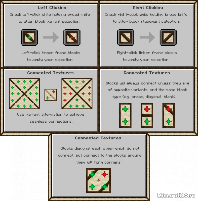 Этот мод позволяет игрокам строить стены из деревянного каркаса с максимальной настройкой. Используя все шесть типов дерева верхнего мира и оба типа дерева нижнего мира, стены с деревянным каркасом могут сочетаться со многими стилями зданий и условиями. Деревянные каркасы Нижнего мира можно создать с помощью глины души, которая находится в биоме долины песка души в Нижнем мире. От опытных строителей, которые хотят немного детализировать свои средневековые деревни, до игроков, которые просто хотят построить уютный маленький коттедж со стилем, в Timber Frames каждый найдет что-то для себя.