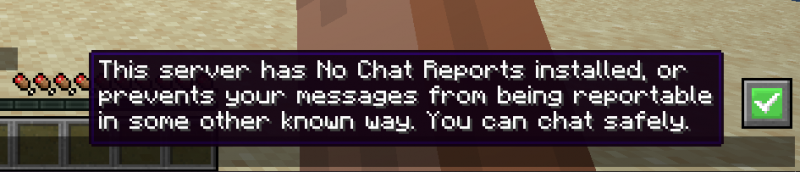 - Ненавязчивый. Сам сервер не запрещает отчеты в чате, но отключил принудительный безопасный профиль и позволяет игрокам отправлять неподписанные сообщения. Игроки на ванильных клиентах по-прежнему подвержены риску, но отчеты об отсутствии чата могут защитить вас и их, если они установлены на клиенте.