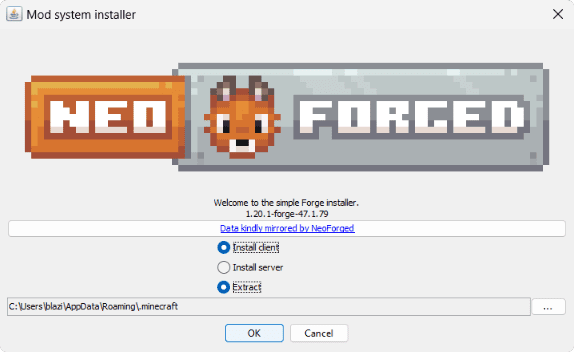- Загрузите установщик NeoForged, используя ссылки для скачивания, представленные ниже.