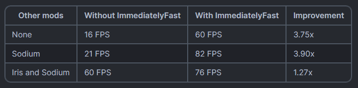 В целом FPS должен быть околона 40% вышепочти во всех сценариях. [Протестировано с использованием IF 1.1.7 на 1.19.3]