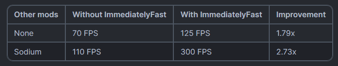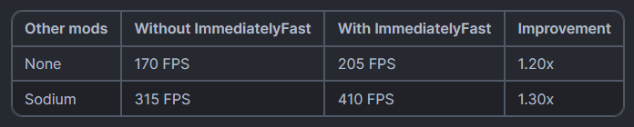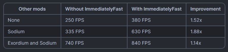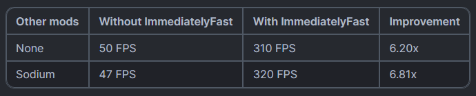 НемедленноFast — это мод Minecraft с открытым исходным кодом, который улучшает производительность рендеринга клиента в немедленном режиме.