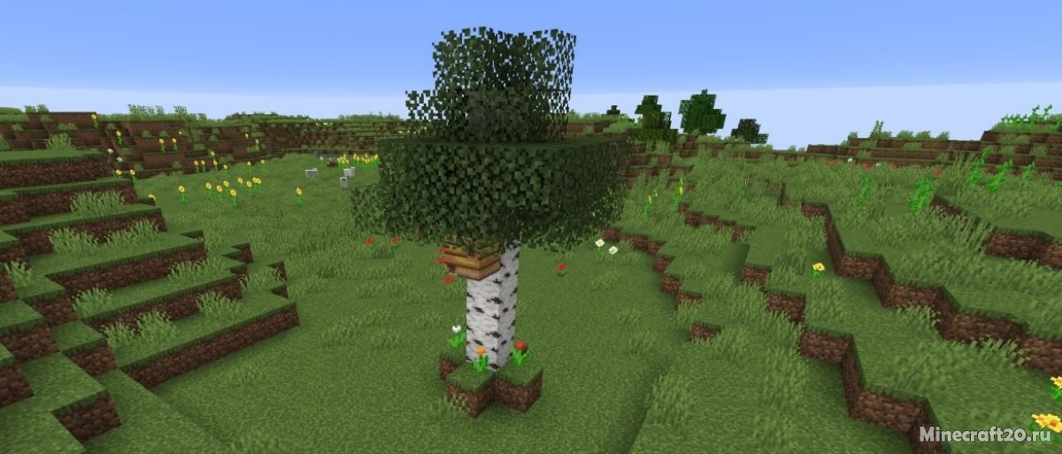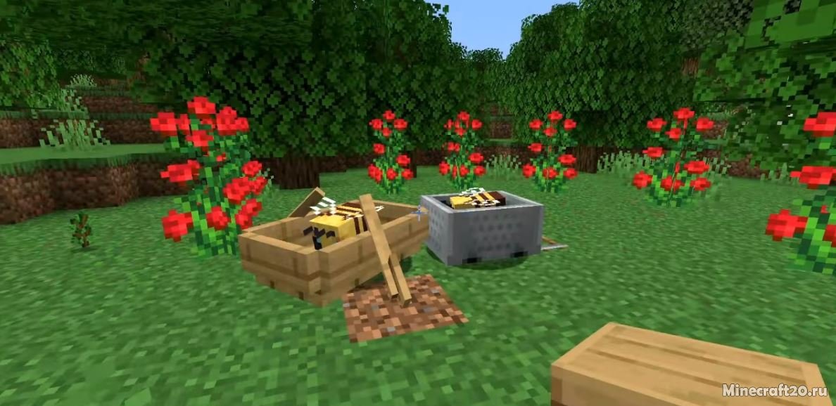 Из блоков появятся саженцы дуба и берёзы, выращенные в 2 блоках от цветка на том же уровне оси Y. Саженцы имеют всего 5% шанса получить пчелиное гнездо.