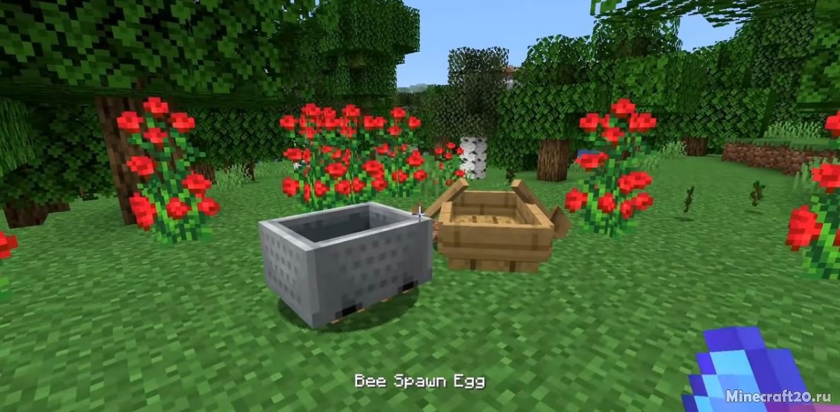 Из мобов пчела больше не будет злится, в случае если поблизости есть улей, или пчелиное гнездо будет извлечено при помощи инструмента зачарованного на «Шёлковое касание».