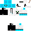 Скин представляет собой голубого слайма из игры, одетого в белую кофту. На голове у него наушники с микрофоном, а на ногах — обычные черные штаны. Образ выглядит стильно и современно, подходит для любителей необычных персонажей.
