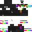 Скин персонажа в черном цвете с яркими радужными вставками. Выглядит стильно и необычно благодаря контрастным элементам. Отлично подойдет для сервера, так как привлекает внимание и выделяется на фоне других игроков. Радужные вставки добавляют динамики и оригинальности образу.