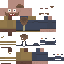 Персонаж выглядит как безумный мужчина с большой коричневой бородой и отсутствием зубов. На нем синяя куртка и коричневые штаны. Глаза у него большие и выразительные, что придает образу еще более странный вид. Этот образ подойдет для ролевых игр или просто для создания необычного персонажа в мире кубов.