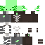 Скин представляет собой зеленого аксолотля, одетого в стильную одежду. На нем коричневая кофта с изображением скелета и серые джинсы. Образ выглядит забавно и необычно, подходит для игроков, которые хотят выделиться.