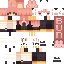 Скин представляет собой персонажа женского пола с яркими волосами, напоминающими по цвету коралл. Она одета в школьную форму: тёмную кофту, юбку и туфли с высокими носками. Образ выглядит стильно и подходит для игры в Minecraft.
