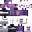 Персонаж с длинными фиолетовыми волосами, одетый в тёмную кофту и юбку. На ногах чёрная обувь. Образ дополняет загадочная атмосфера, подходящая для ролевых игр или хэллоуинских приключений.